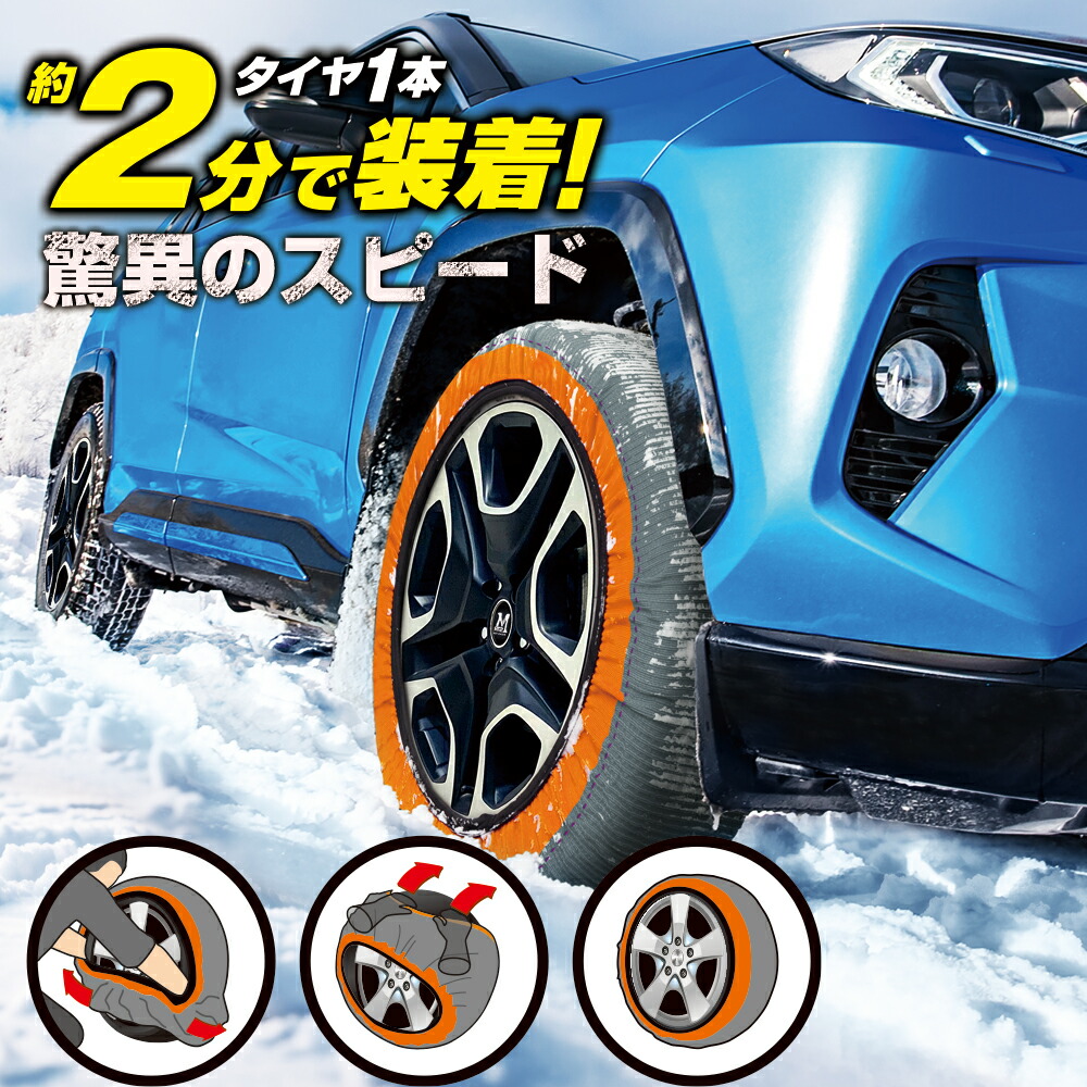 タイヤ1本あたり約2分で装着が可能で、急な積雪時でも焦らずに滑り止め対策ができます。