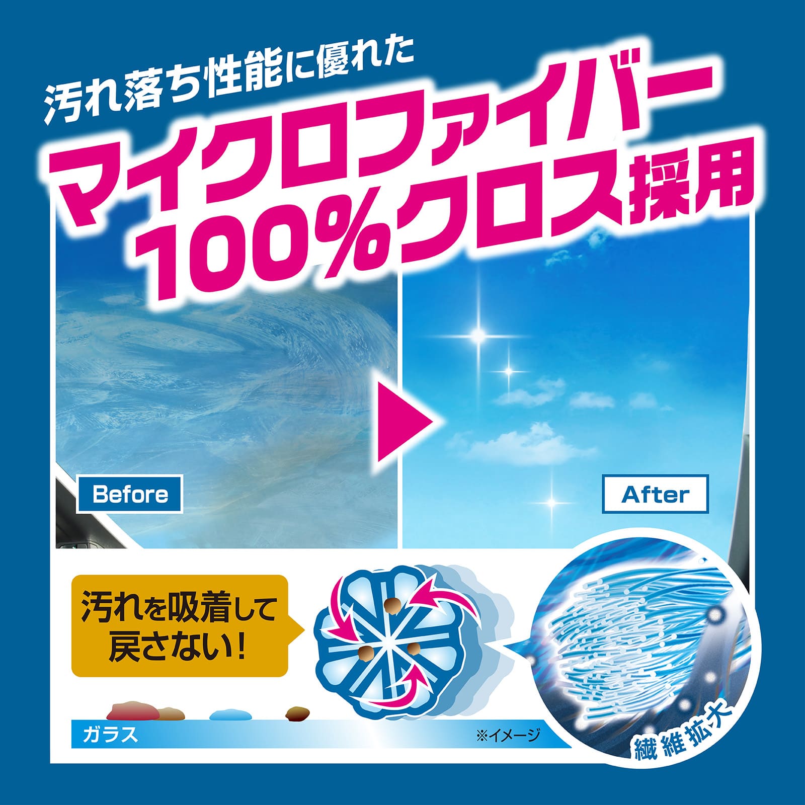 ガラスの汚れをスパッと落とし、拭きスジを残さずクリアに仕上げる内窓専用ウェットクロスです。 不純物を取り除いた純水を使い、サッと拭いても拭きスジが残りません。白残りしやすい界面活性剤は不使用でよりクリアに仕上がります。 また、ガラスに付着した手アカやタバコのヤニ汚れに浸透する溶解成分と、汚れをかき取り吸着するマイクロファイバー100%クロスの相乗効果により、ガンコな汚れをしっかり除去!透明感のあるスッキリきれいなガラスに仕上がります。