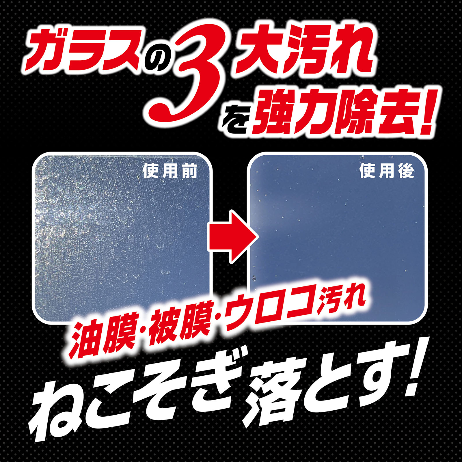 長年愛されてきたキイロビンシリーズから、油膜・被膜はもちろん、ウロコ汚れをまとめて根こそぎ落とす屋外ガラス専用油膜取りクリーナーです。従来品では取りきれなかったウロコ汚れにも対応し、パワーアップした内容液が新開発したPROアプリケーターの表面に絡み合い、相乗効果でスピーディーに効率よく汚れを落とします。プロ並の仕上がりでガラス本来の輝きを誰でも簡単に体感できます。シリーズの信頼と進化を融合させたキイロビンシリーズの新たなハイパフォーマンスモデルです。