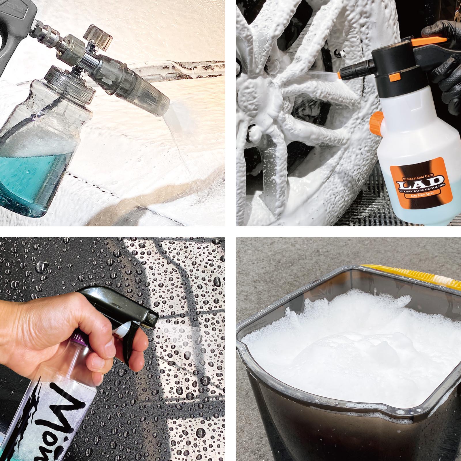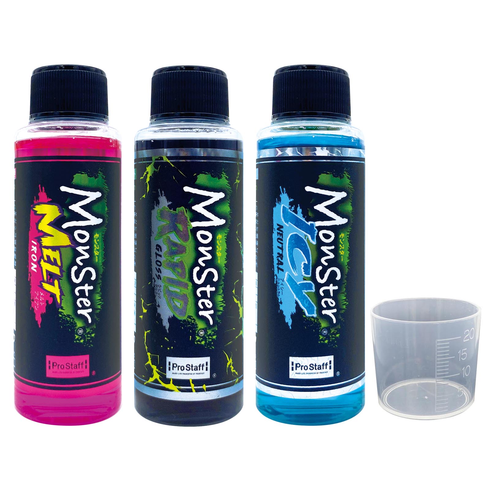 3タイプの特徴(鉄粉取り、コーティング、メンテナンス)のシャンプーセットです。高濃度ならではの優れた性能を、使い比べながら実感できます。 ❶鉄粉取りシャンプー「メルトアイアン」はボディーに付着した鉄粉や、ホイールのブレーキダストを化学反応でしっかり洗浄します。 ❷コーティングシャンプー(撥水)「ラピッドグロス」は汚れを落とすと同時に車全体(ボディーも窓も)コーティング効果が得られ爆速で撥水・艶仕上げになります。 ❸メンテナンス(中性)シャンプー「アイシーニュートラル」は摩擦を極限まで抑えることで、驚くほどの潤滑性により滑るように汚れを洗浄できます。コーティング施工車のメンテナンスに最適です。 各シャンプーにより、驚異の仕上がりで車が輝きます。