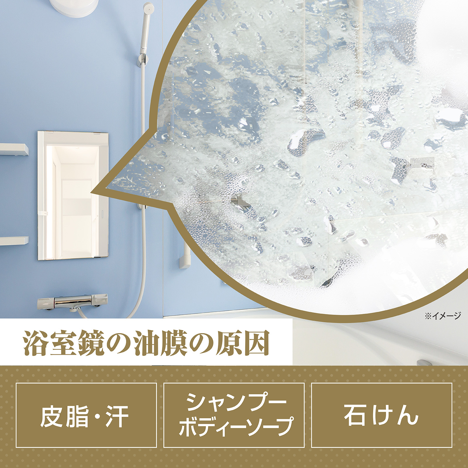 浴室鏡・ガラスの油膜汚れをスッキリ除去!
