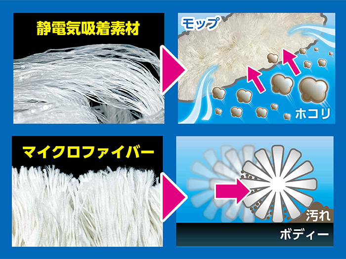 ダブル繊維で汚れを引き寄せてキャッチ!