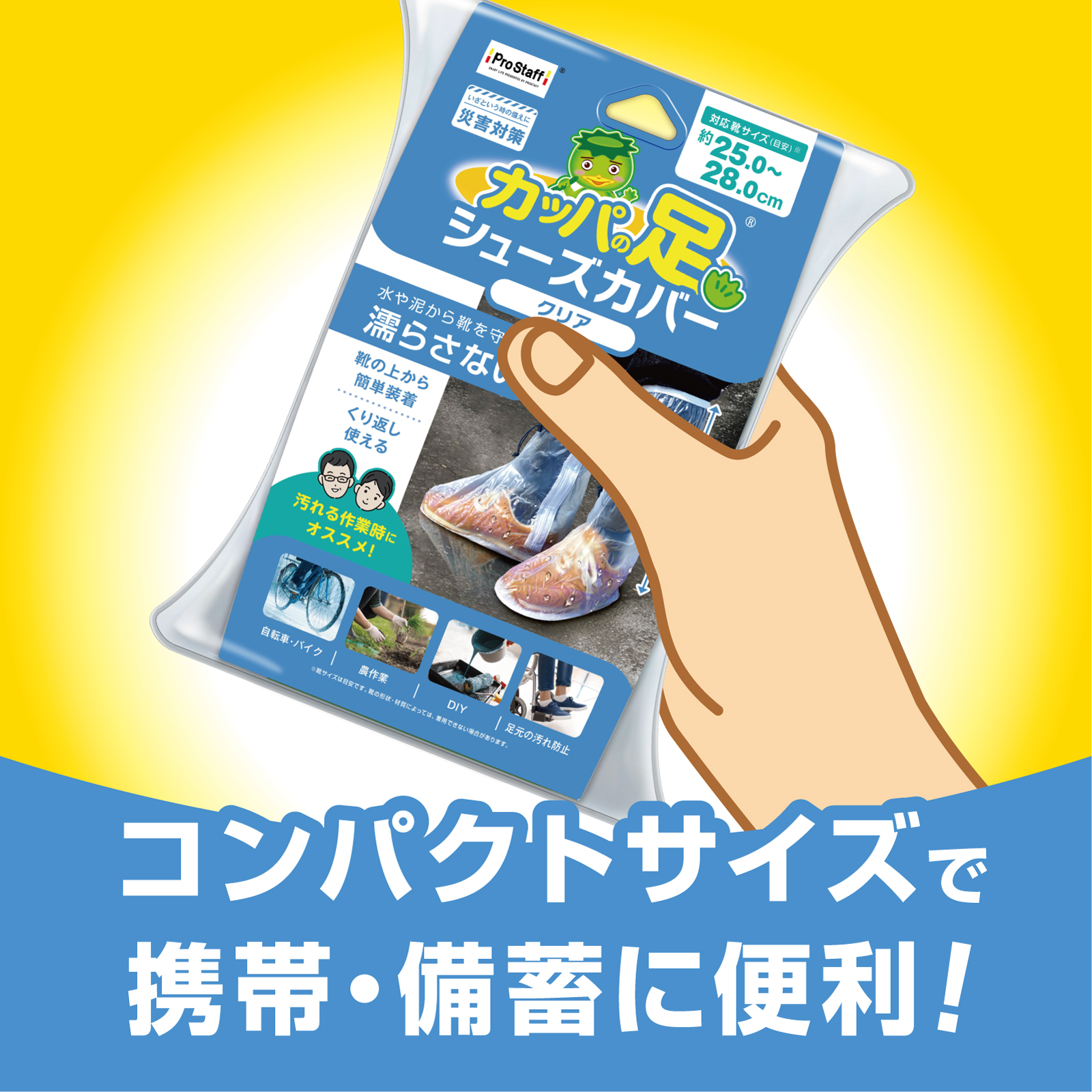 雨の日に、靴の上からそのまま履けるシューズカバーです。 膝下までしっかり覆うロング丈仕様で水・泥などから大切な靴を守ります。簡単に脱着できるサイドファスナー式、また使用中のずり落ちを防止しフィット感をアップするゴムひもを付属。使いやすさにこだわりました。さらに雨や雪道も滑りにくい靴底の凹凸加工と、夜間も目立つ反射シート付きの安全仕様。雨の日の通勤・通学はもちろん、農作業やガーデニング、DIY時の足元の汚れ防止、災害対策など様々なシーンで活躍します。
