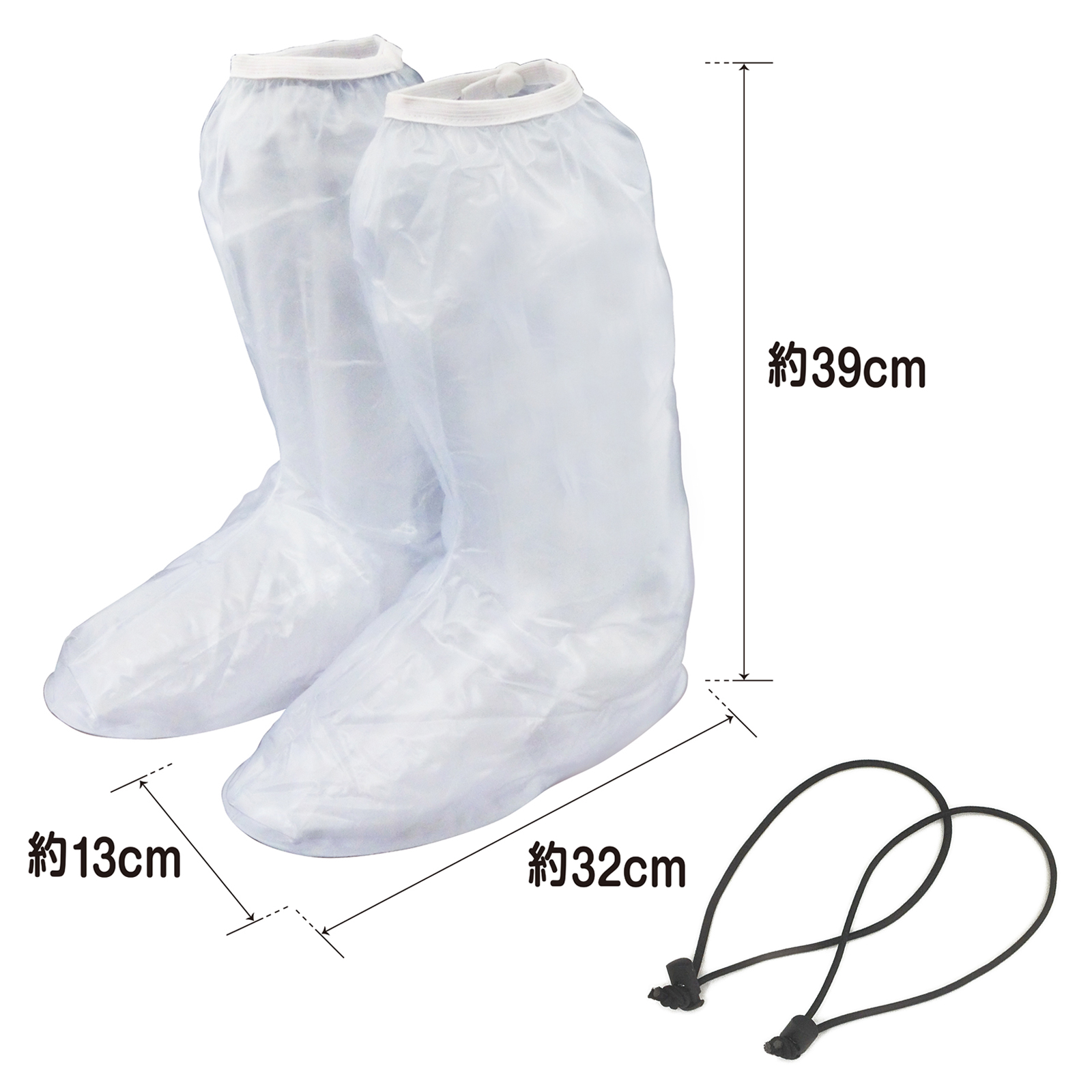 雨の日に、靴の上からそのまま履けるシューズカバーです。 膝下までしっかり覆うロング丈仕様で水・泥などから大切な靴を守ります。簡単に脱着できるサイドファスナー式、また使用中のずり落ちを防止しフィット感をアップするゴムひもを付属。使いやすさにこだわりました。さらに雨や雪道も滑りにくい靴底の凹凸加工と、夜間も目立つ反射シート付きの安全仕様。雨の日の通勤・通学はもちろん、農作業やガーデニング、DIY時の足元の汚れ防止、災害対策など様々なシーンで活躍します。