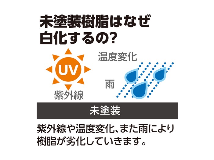 未塗装樹脂の白く劣化した箇所に深い黒ツヤを与える、未塗装樹脂専用ツヤ出しコーティング剤です。 ガラス系コートの深いツヤと保護被膜により、黒く綺麗な状態を約3ヶ月持続します。 車外の樹脂パーツはもちろん、車内のダッシュボードやドアパネル足元付近の擦れキズ隠しにも最適。また、大きな樹脂バンパーやダッシュボード等、広い面でも気にせず使える大容量の100mlタイプです。 新車時からの樹脂劣化防止や、経年車のコーティングにも効果的な保護コート剤です。