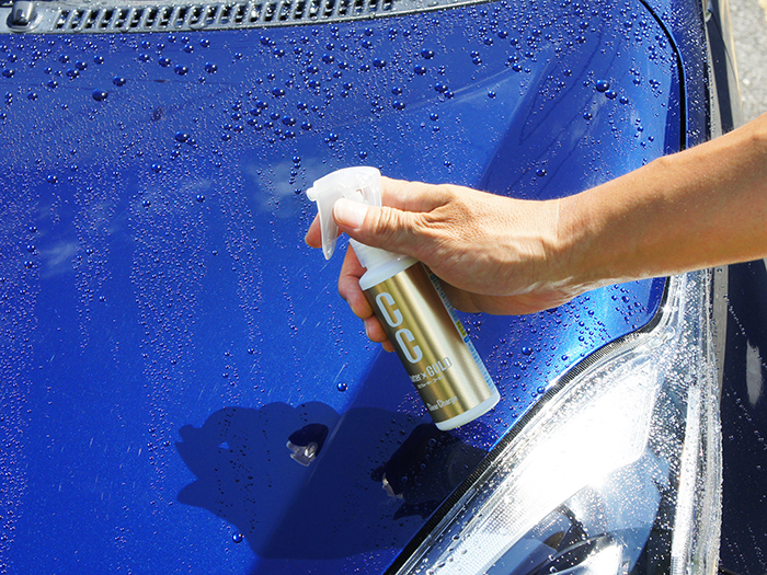 好評発売中のCCウォーターゴールドから初めての方でもお買い求めやすいミニサイズが新登場!洗車後のぬれたボディーにスプレーして拭くだけの簡単コーティング剤です。 浸透力の高いコーティング成分のガラス系ナノコロイドに、ガラス系濃艶プレミアム成分を配合したWコーティング効果!今までにない深い艶と透明感溢れる輝きで車全体を包み込みます。 また、いろいろな箇所に使用でき、ボディー、窓ガラスはもちろん、ヘッドライト、ホイール、メッキ部分や車内のダッシュボード等にもお使いいただけます。
