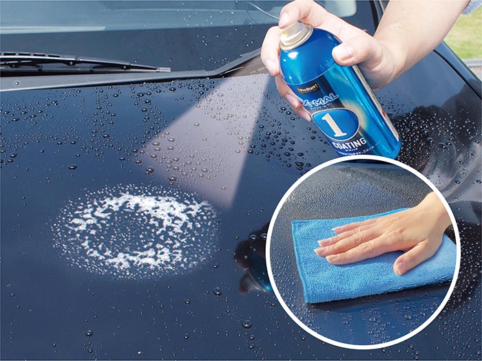 汚れ落としと同時にガラス系コーティングが簡単に仕上がる、万能タイプのマルチコーティングスプレーです。 より深く濃い艶にアップ! 艶成分を大幅に増量し、ツヤツヤに仕上がります。 使い方はとっても簡単、スプレーしてクロスで拭くだけでOK!しかも、施工面が濡れていても乾いていても使えます。洗車機では落ちない表面にこびりついた油・虫汚れを「浸透分解溶剤」が落とし、さらに「ガラス系ポリマー」が表面にコーティング被膜を形成し劣化から守ります。 雨を弾いて、汚れを付きにくくさせる撥水効果。お手入れも、水洗いだけで汚れがラクに落とせます。車やバイクの各箇所はもちろん、ゴルフ、釣り具、スマホ等ご家庭でも幅広く使用できます。