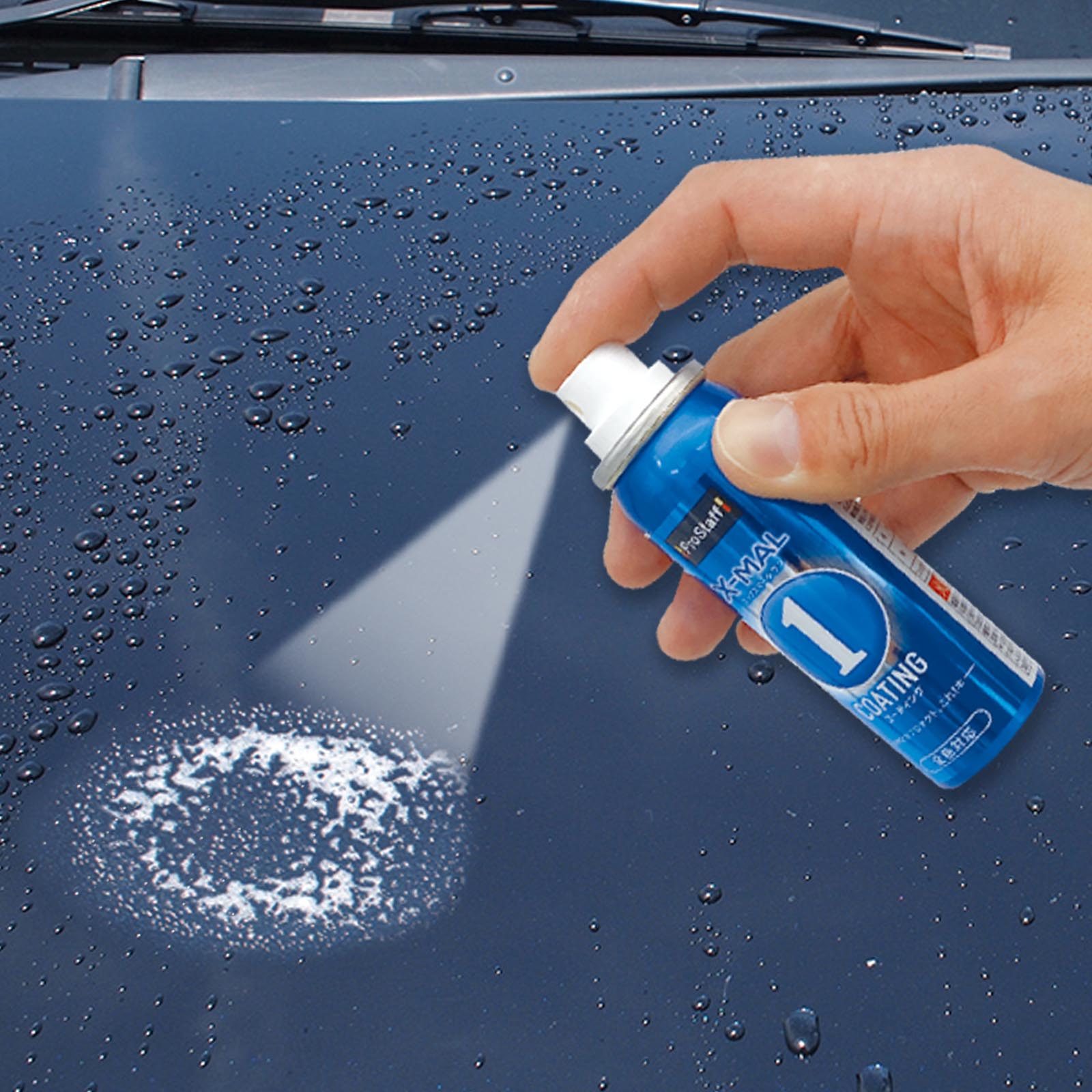 汚れ落としと同時にガラス系コーティングが簡単に仕上がる、万能タイプのマルチコーティングスプレーです。 使い方はとっても簡単、スプレーしてクロスで拭くだけでOK!しかも、施工面が濡れていても乾いていても使えます(普通車約1台分)。 洗車機では落ちない表面にこびりついた油・虫汚れを「浸透分解溶剤」が落とし、さらに「ガラス系ポリマー」が表面にコーティング被膜を形成。深く濃い艶と、雨を弾いて汚れを付きにくくさせる撥水効果を与えます。お手入れも、水洗いだけで汚れがラクに落とせます。車やバイクの各箇所はもちろん、ゴルフ、釣り具、スマホ等ご家庭でも幅広く使用できます。