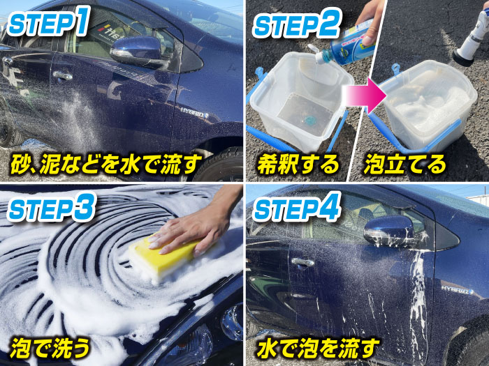 豊富な泡で車の汚れをまるごとしっかり落とすシャンプーです。 油汚れに強くボディーはもちろん、ガラス、ホイール、タイヤまでこれ1本で洗浄できます。また、たっぷり使える特濃タイプで、希釈で使用すれば普通車約20台分の洗車が可能です。汚れのひどい場合には、直接液をつけて使用できます。さらに「キレート剤」配合により洗車時の焼き付きを防止し、ウォータースポットになりにくくします。ボディーを綺麗にするだけでなくコーティングの定着もアップさせます。X-MAL1の施工前後に最適なシャンプーです。