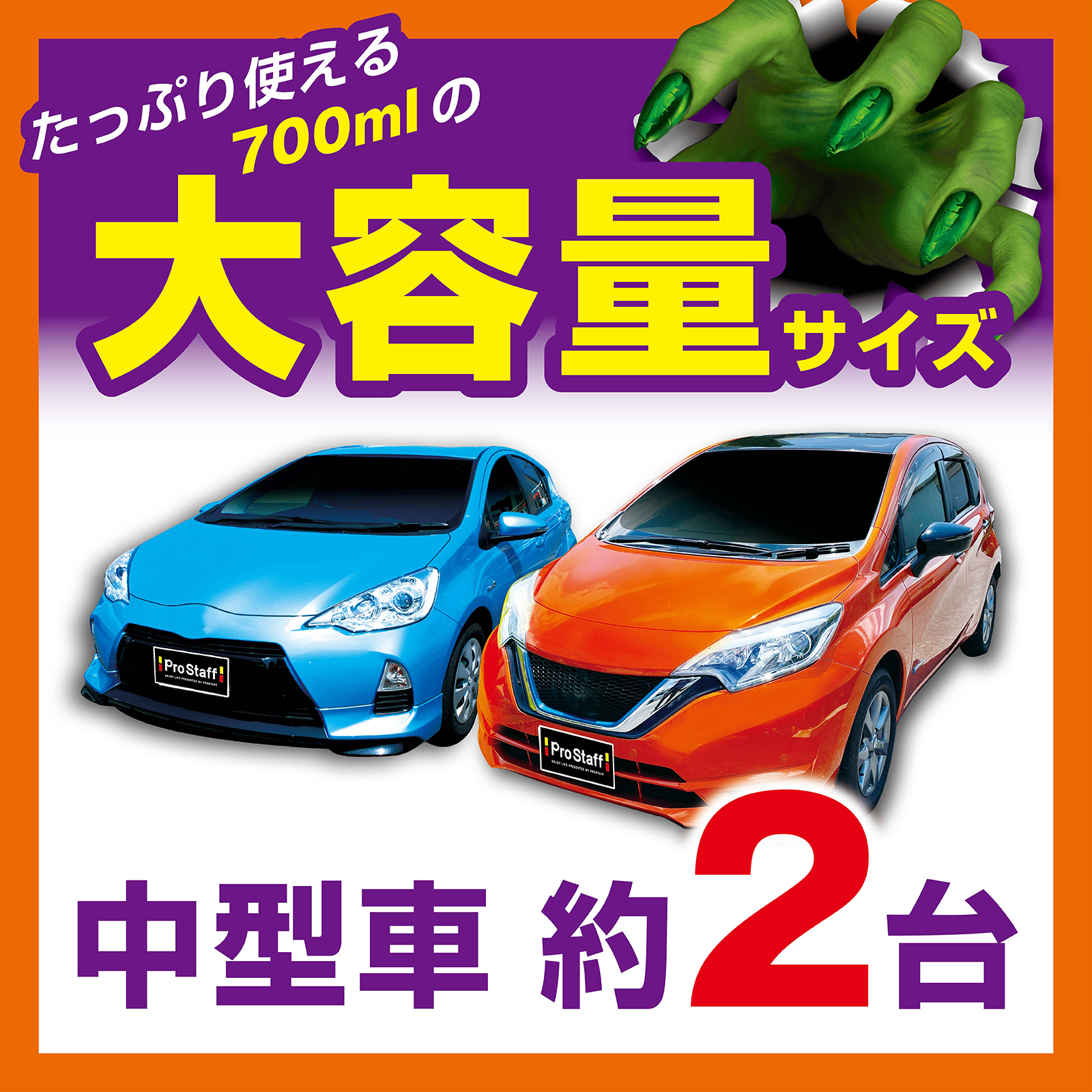 ボディーやホイール表面の鉄粉を驚くほど溶かして落とす鉄粉除去クリーナーです。 有効成分を超高濃度に配合し、鉄粉を包み込んで密着する液ダレしにくいジェルタイプ。頑固な鉄粉を赤紫色に変色させて強力に除去し、滑らかな表面に仕上げます。 さらに、フルーティーな「ブルーベリー」の香りで鉄粉クリーナー特有のイヤな臭いを激減し、快適かつ徹底した鉄粉除去ができます。 中型車約2台分の大容量タイプで、大型車にもたっぷりお使いいただけます。