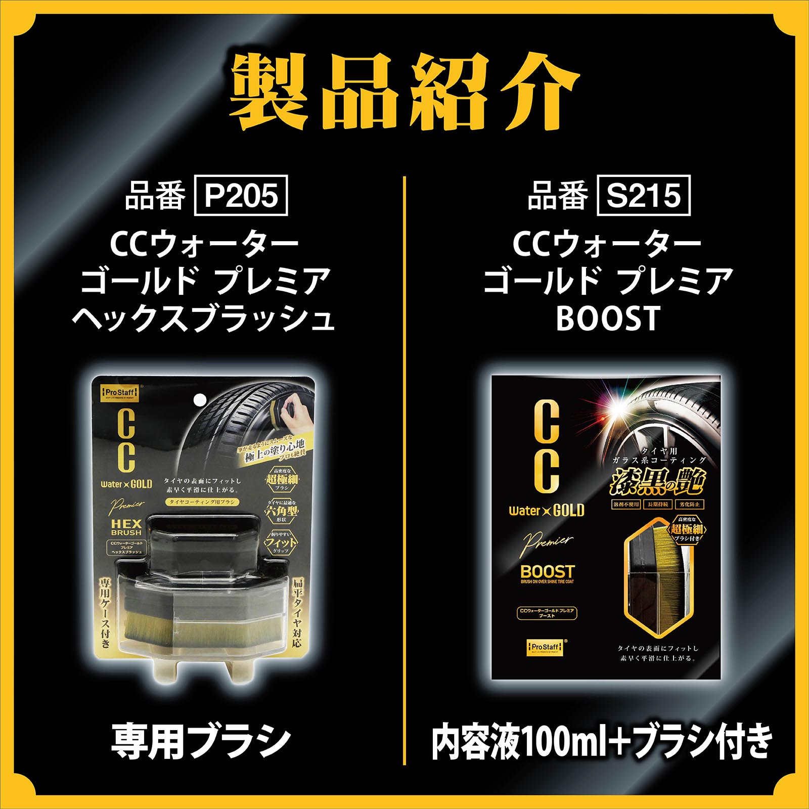 【EC限定販売商品】 タイヤ用ガラス系コーティング剤「CCウォーターゴールド プレミア BOOST」の大容量タイプです。タイヤに深みのある漆黒の艶を与え、長時間にわたって美しさを保ちます。液ノビが非常に良く、ムラなく簡単に、素早く塗り広げることができます。 普通車タイヤ約120本分使用することができ、頻繁にタイヤコーティングをする方に最適です。また、石油系溶剤不使用でタイヤを傷めず、安心して使用できます。 さらに紫外線や経年劣化からタイヤを守り、色褪せやひび割れを抑えます。