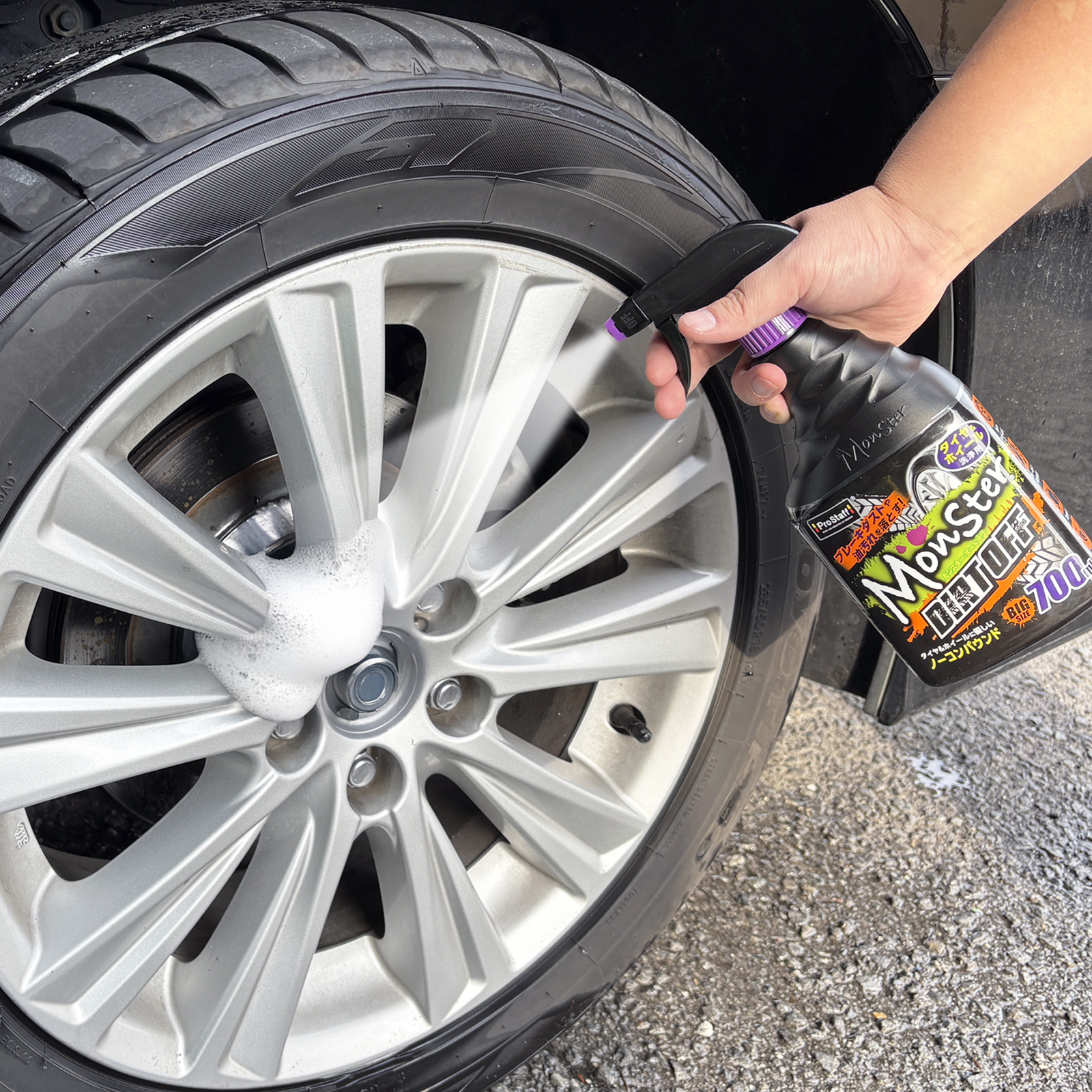 頑固なブレーキダストや油汚れを濃密泡で包み込み、素早く落とすタイヤ&ホイール用クリーナーです。泡が細部にしっかり密着し、汚れを浮かせて一気に洗浄します。 コーティング前の下処理にも最適です。 タイヤ・ホイールに優しいノーコンパウンド+弱アルカリ性処方で変色や塗装へのダメージを抑え、爽やかなシトラスの香りで快適に作業する事ができます。 700mlの大容量で複数台の洗車にも対応します。モンスター サーベラスやモンスター デュアルブレードなどのホイールブラシと併用すれば、スポークやナット周りの汚れも効率よく落とせます。