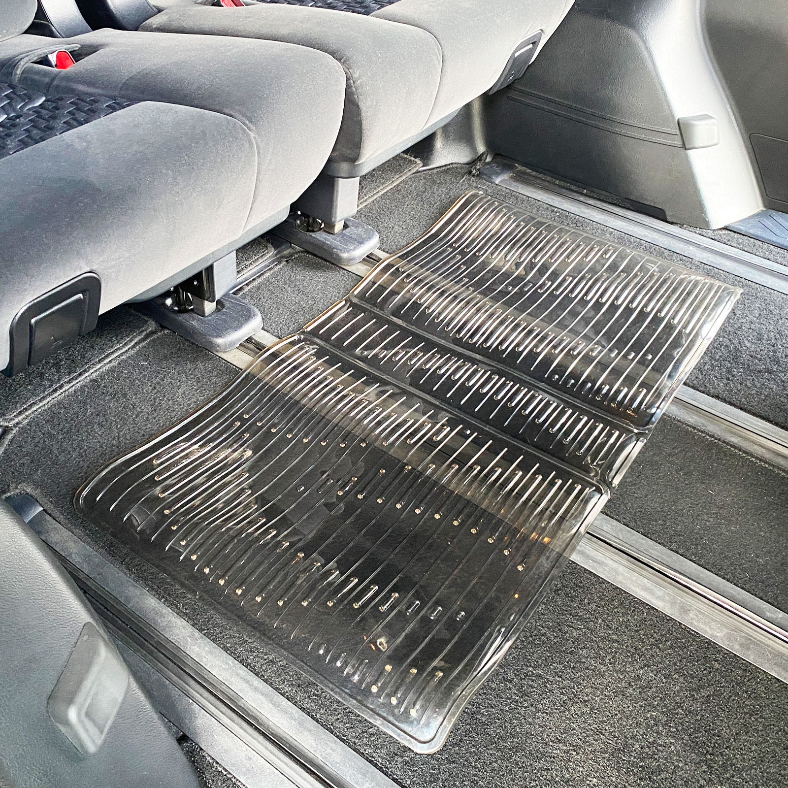車内の足元の汚れを防ぐクリアタイプの2列目、3列目のフロアマットです。裏面には、マットのズレを防止するスパイクを採用。 カラー:クリアスモーク