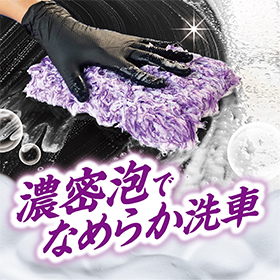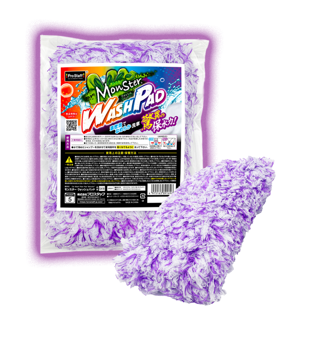 コーティング施工車にやさしく、素早く汚れを落とせる洗車用パッドです。毛足の長い風合いの異なる繊維が汚れをサッと絡め取り、軽やかでなめらかな洗い心地を実現。さらに保水力が高く水切れしにくいので、一度で広い面をスピーディーに洗車できます。