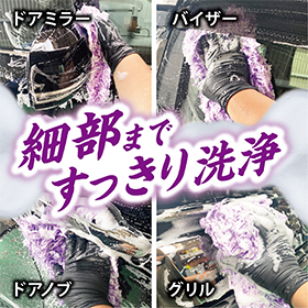 ホイールの内側に付着した汚れを掻き取り、しっかり落とします。毛量が多く隙間に入り込み、幅広いホイールに使用できます。柔らかい材質によって洗浄中の水はねを抑制します。ガンコな汚れにはクリーナーと併用することで効果的に汚れを落とすことが出来ます。